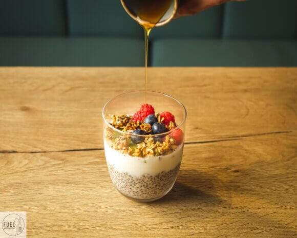 Dairy products tend to be high in protein. Whilst not everyone loves cottage cheese it is one of the most protein-rich dairy products out there. We throw full-fat Greek yogurt into a lot of dishes too. Greek yogurt is especially great for weight management, as it has twice the amount of protein as regular yogurt. Fuel also cultivates its own kefir (fermented milk drink rich in probiotic bacteria with many associated gut health benefits) – add some to your smoothie next time you are in.