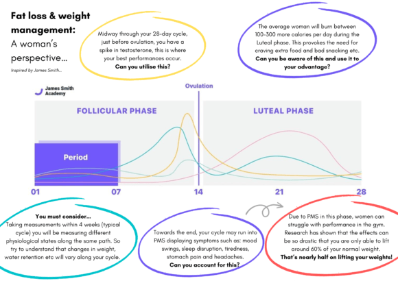 Women will respond differently to the physiological changes during menstruation, but everybody can benefit from starting to take notice and understand their cycle. This way you can equip yourself with the correct knowledge to manipulate your own weight management and fat-loss.